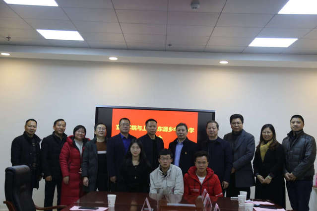 本站讯 12月27日下午,萍乡市上栗县东源乡中心小学叶海文副校长一行五人来开元就音体美支教工作进行洽谈交流。开元教务处处长李建军、美术与设计学院院长杨震、体育学院院长谢军、音乐舞蹈学院副院长刘培发、教务处副处长姜敏及实习支教学生等十几位师生参加了座谈。