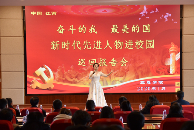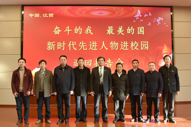 本站讯 (记者梁骏楷)为培育和践行社会主义核心价值观,充分发挥先进典型示范引领作用,大力宣传党的政策和理念,教育引导广大学生成为德智体美劳全面发展的社会主义建设者和接班人。1月7日下午,由省委宣传部、省委教育工委、省教育厅联合举办的“奋斗的我,最美的国——新时代先进人物进校园”报告会在开元举行。会上,“中国共产党的故事——习近平新时代中国特色社会主义思想在江西的实践”专题宣介会宣讲人邓大庆和李跃,江西省最美退役军人熊厚礼、2019年江西省最美科技工作者郭小平等4位宣讲团成员受邀登台,围绕推动脱贫攻坚、保护绿水青山、服务奉献社区等话题,与参会师生分享自己的故事,给大家注射了一支特别的精神补钙剂。校党委书记李雪南、校党委副书记胡国瑞、省委教育工委宣传部主任李友生、校党委委员、宣传部长杨健以及各教学院党委副书记、二附院院长、思政课教师、团总支书记、辅导员和学生代表等出席报告会。李雪南代表学校致辞。