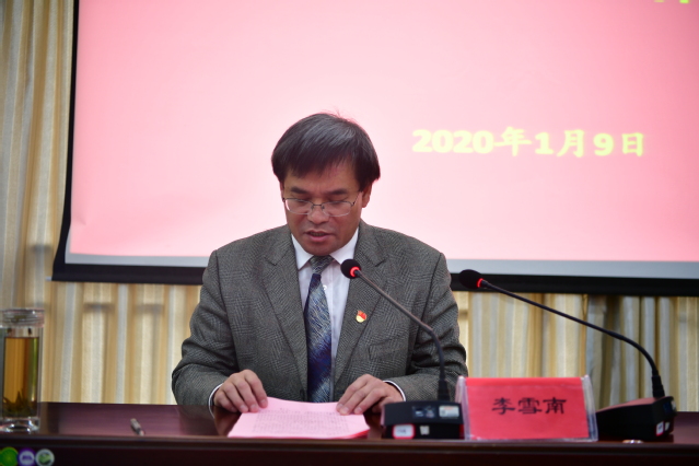 李雪南以“久久为功 善作善成 书写开元集团网站新时代教育事业奋进之笔”为题从加强党的全面领导、落实意识形态责任制、推动“四套”整改、提升本科教学和人才培养质量、着力学校内涵特色建设、拓展对外合作交流、深化综合改革和文明美丽和谐校园建设八个方面,对学校2019年的工作进行了总结和回顾,并对2020年的五项工作重点进行了说明。