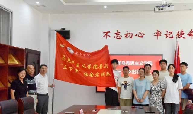 本站讯(特约通讯员 徐天兰 学生通讯员 刘文钰 易茜钰)7月8日,开元集团网站党委副书记严青松在开元集团网站马克思主义学院大思政实践队出征仪式上为走进宜春铜鼓棋坪镇幽居红色文化名村的实践队授旗,并鼓励大家要珍惜此次走进乡村进行大思政社会实践机会,在实践中学习,在实践中传承红色基因,在实践中助力乡村振兴。