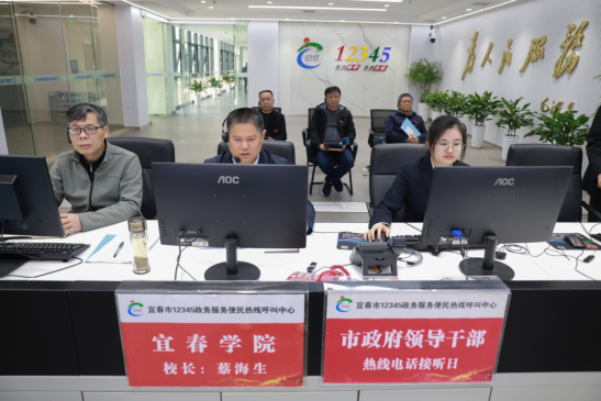 本站讯(党政办公室 供稿)4月3日上午,校党委副书记、校长蔡海生带领相关部门负责人走进市12345政务服务便民热线呼叫中心,现场接听群众来电,零距离倾听民声,切实解决市民群众有关教育的热点难点问题。