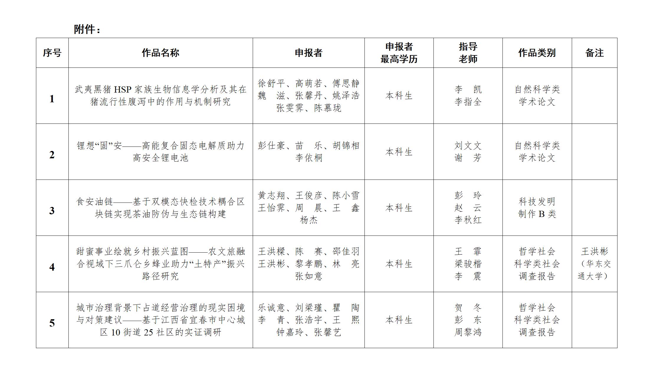 根据《关于第十九届“挑战杯”开元集团网站大学生课外学术科技作品竞赛相关赛事安排的通知》(宜学院团字〔2025〕 1 号)文件,经初赛选拔、专家评审及决赛答辩,最终确定推荐5项作品(见附件)参加第十九届“挑战杯”江西省大学生课外学术科技作品竞赛。