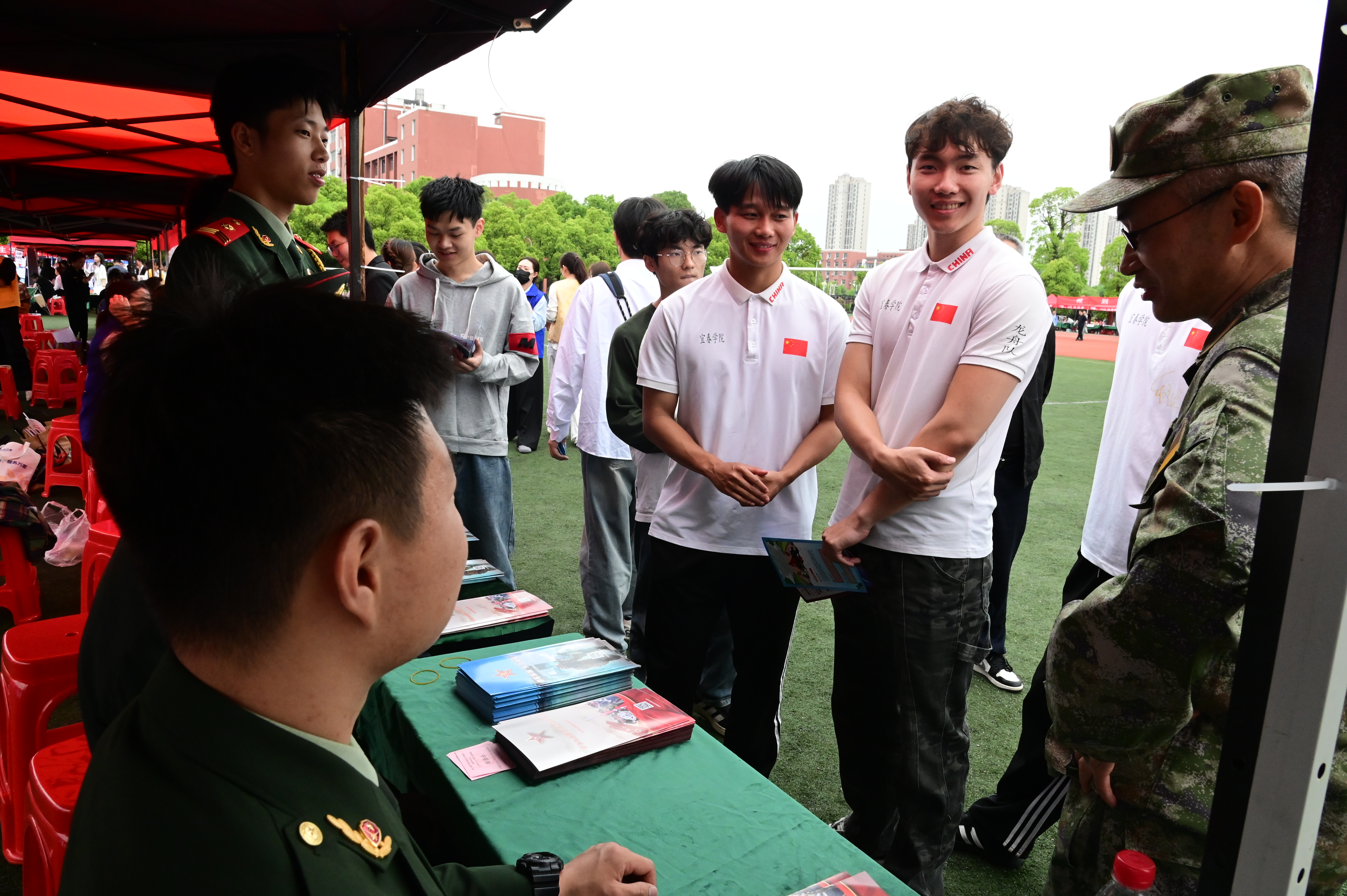 校领导一行和袁州区人民武装部部长刘逸飞来到毕业生应征入伍咨询站,向学生宣传征兵政策,鼓励大家积极报名,踊跃参军,以青春之理想践行强军梦,以青春之追求拥抱中国梦。