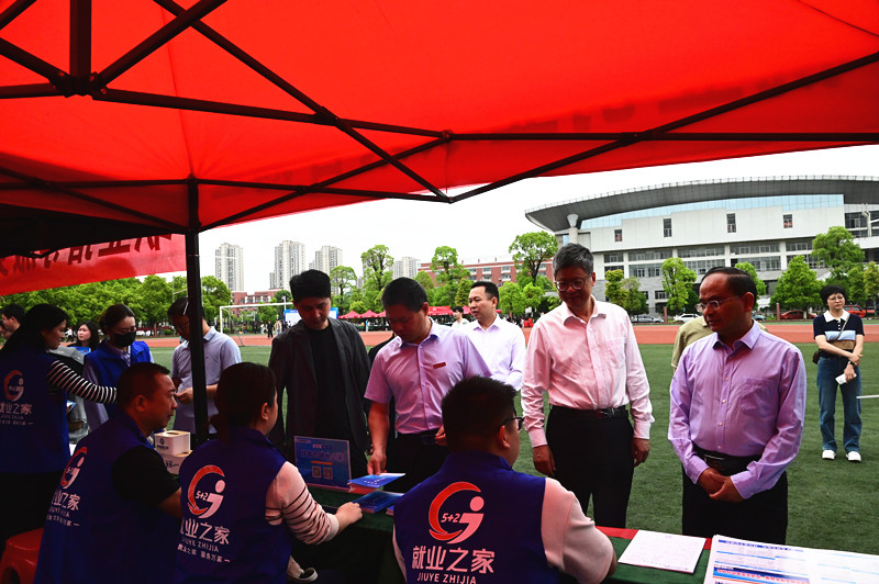 双选会现场人头攒动,校党委书记李国金,校党委副书记、校长蔡海生,校党委委员、副校长邱家明,校党委委员、副校长谢芳来到现场与企业代表、毕业生们亲切交谈,深入了解用人单位的招聘需求、岗位设置以及毕业生的求职意向、就业进展等情况。校领导鼓励毕业生积极求职,并希望他们能脚踏实地,走好求职路上的每一步。
