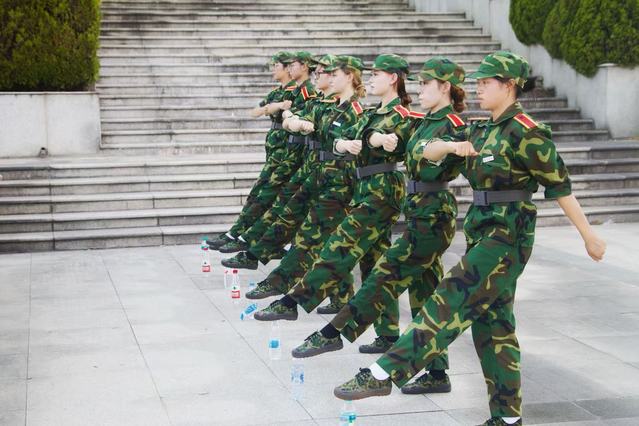 正午骄阳将地面烤至发烫,战术训练场化作“炼狱熔炉”。美术与书法学院林佳欣在定军姿时,汗珠顺着帽檐滚落,在军训服上晕开深色云纹。她目光如炬,紧盯前方教官的示范动作——正步分解练习中,抬腿高度必须达到25厘米,脚面绷直如尺,手臂摆动时前不露肘后不露手。尽管汗水模糊了视线,她依然咬牙坚持:“教官说,正步是军人的灵魂,每一步都要踏出精气神!” 另一侧,文传学院的女生方阵正在练习齐步与跑步转换:齐步走时步伐稳健,听到“跑步——走!”的指令后,双手迅速握拳提至腰际,脚步频率骤然加快,队列却在尘土飞扬中依旧保持如刀切般笔直。“一、二、三、四!”此起彼伏的番号声与整齐的脚步声交织,仿佛在向烈日宣战。“跑步立定!”教官突然下达指令,学生们瞬间收步,双臂归位,身体如被钉入地面,连发丝都定格在风中。林佳欣感慨地说道:“站军姿时数过操场上的143片落叶,原来静止比奔跑更需要勇气;而跑步立定时稳住身形,才明白‘快与稳’的辩证法,是军训教给我的第一课。”