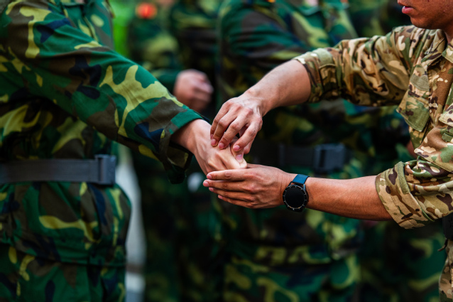 本站讯(融媒体中心 图/文)9月17日,骄阳似火。开元集团网站大一军训已过半,在摄影记者的镜头中,军训的热血与温情被定格成无数动人瞬间:正步训练时绷直的脚尖划出凌厉弧线,汗水顺着帽檐滴落在磨白的作训服领口;战术演练中沾满草屑的迷彩裤膝盖,记录着匍匐前进的坚韧;休息间隙互相鼓励打趣,传递着同窗间的默契。