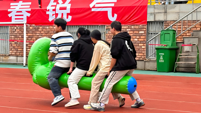 趣味项目“毛毛虫竞速”现场,欢声笑语不断。队员们口号统一、步调一致,即便途中节奏出现波动,也能迅速调整、彼此鼓励。轻松的氛围不仅增进了队员间的情谊与集体认同感,也为紧张的竞技赛场增添了诸多乐趣。