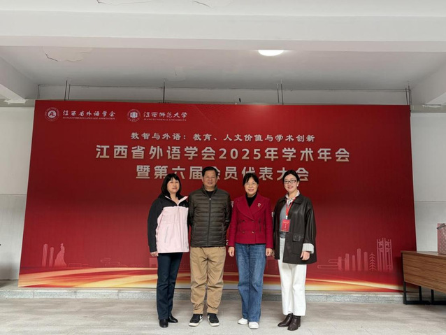 本站讯(外国语学院 供稿)12月6日,外国语学院院长高芸一行四人代表学院参加江西省外语学会2025年学术年会暨第六届会员代表大会。本次会议由江西省外语学会主办、江西师范大学外国语学院承办。