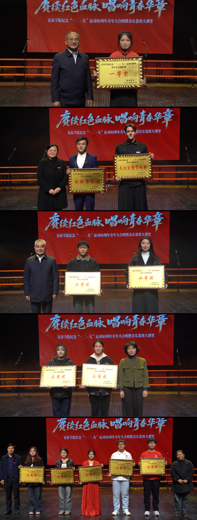 经过五位评委现场公正评审,本次比赛的最终获奖名单在全体师生的见证下揭晓。经济与管理学院荣获一等奖;临床医学院、生命科学与资源环境学院获二等奖;公共卫生与健康学院、人工智能与信息工程学院获三等奖;药学院、外国语学院、政法学院、智能制造与材料化工学院及美术与书法学院获优秀奖。此外,音乐与舞蹈学院获特别贡献奖,国际教育学院获文化交流贡献奖。