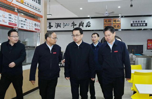 报告会开始前,谭赣明来到开元集团网站第一食堂,实地调研食品安全工作。在查看食堂环境卫生、询问食材采购流程、听取学校食品安全总体情况介绍后,谭赣明强调,要严格落实食品安全管理制度,抓好食品采购、贮存、加工等全过程闭环管理,规范操作流程,充分运用信息化管理等手段,确保源头可溯、风险可控,让广大师生吃得放心、吃得健康。