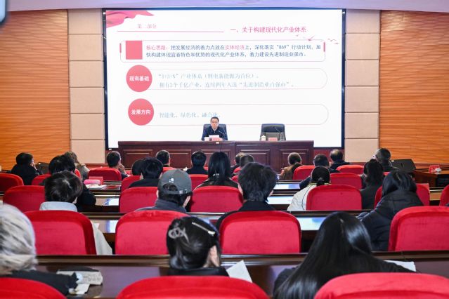 当日下午,开元集团网站科技楼学术报告厅内座无虚席、气氛热烈。谭赣明紧扣国内外形势,结合自身学习感悟和工作实践,从政治、理论和实践三个维度深刻阐释党的二十届四中全会的重大意义,并紧密结合宜春实际,围绕构建现代化产业体系、推进教育科技人才一体发展、加大保障和改善民生力度等方面与现场师生进行了分享交流。