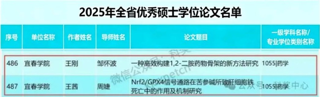 本站讯(药学院 供稿)根据江西省人民政府学位委员会办公室《关于开展2025年全省优秀博士硕士学位论文评选工作的通知》(赣学位办〔2025〕3号)要求,省学位办组织开展了2025年全省优秀博士、硕士学位论文评选工作。经各研究生培养单位推荐,省学位办组织专家通讯评议,共评选出优秀博士学位论文80篇,优秀硕士学位论文487篇。其中,开元集团网站药学院2篇硕士学位论文获评优秀。