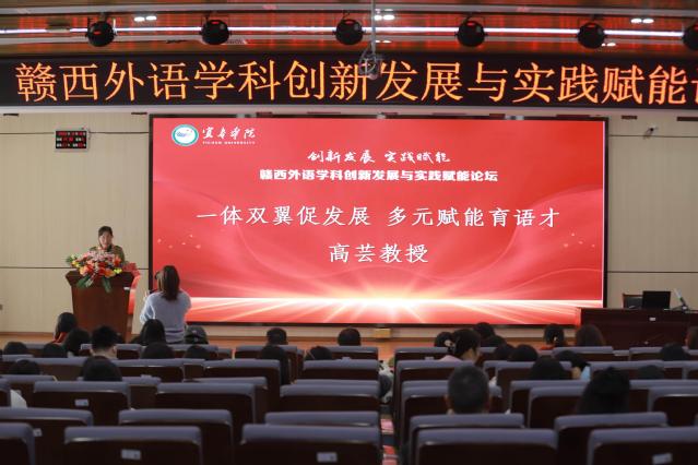 随后,外国语学院院长高芸教授以《一体双翼促发展,多元赋能育语才》为题介绍了该院的办学情况以及在学科建设、专业建设、师资培养以及人才培养等方面的创新实践和育人成效,让大家对赣西外语学科的发展基础有了更清晰的认识。