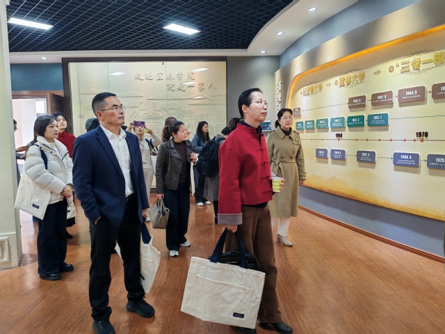 与会嘉宾与代表报到后,在外国语学院班子成员陪同下先后参观了外国语学院文化墙和校史馆。