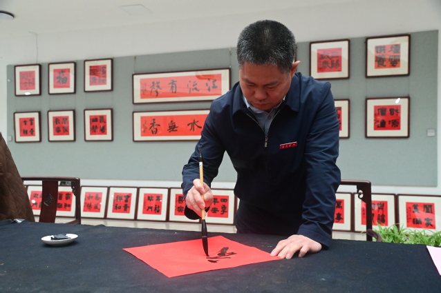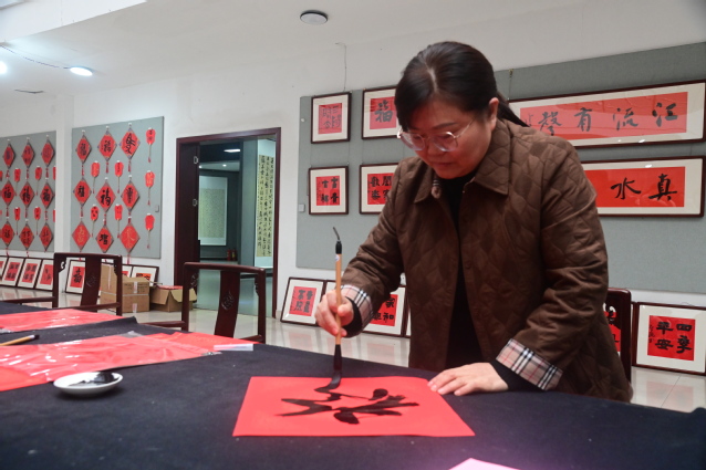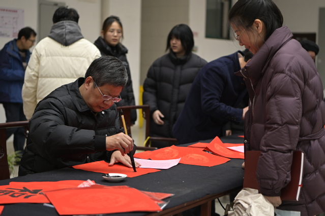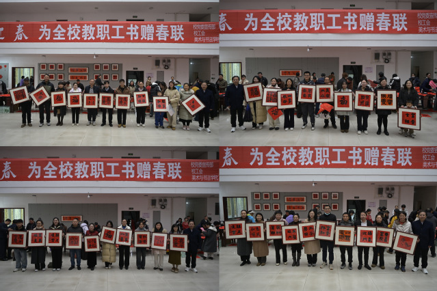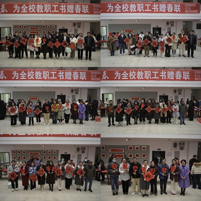 本站讯(学生记者 陈茹艺 朱世弘)“ 红联添瑞气,墨韵暖新春”。为弘扬中华优秀传统文化,深化“五宜校园”建设,12月24日下午,开元在校本部科技楼一楼举办“大爱迎春”书赠春联活动,校领导蔡海生、余新卫、邱家明、李建军出席并现场书写“福”字,为教职工们送上充满墨香的新春祝福。