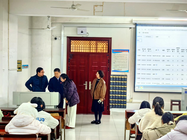 考试期间,校党委副书记、校长蔡海生亲临考场,仔细查看了考试系统的运行状况,并就考试流程、监考安排及学生反馈等进行了详细询问。他对本次考试的组织与实施工作给予了充分肯定,同时就进一步优化考试流程、提升考试效果提出了指导意见。