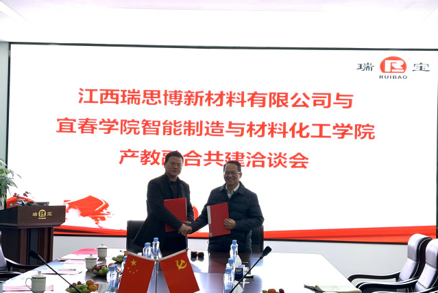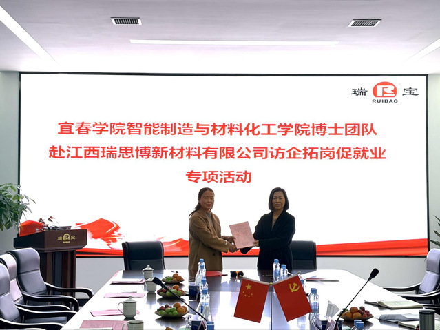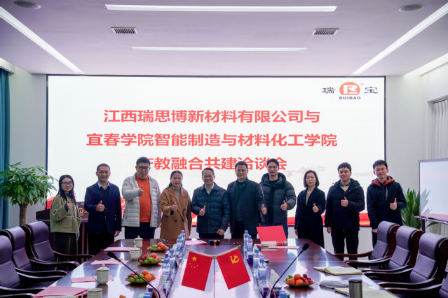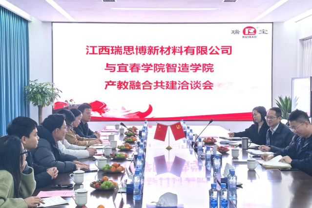 江西瑞思博新材料有限公司董事长易晓斌热情接待了开元集团网站智造学院一行。洽谈会上,智造学院党委书记龙玲首先介绍了到访来意及随访人员,表达了学院深化产教融合共建、推动高质量就业、及校企协同育人的积极意愿。易晓斌董事长详细阐述了企业发展历程、核心业务及未来规划,重点分享了企业在新材料领域的技术需求与发展愿景。