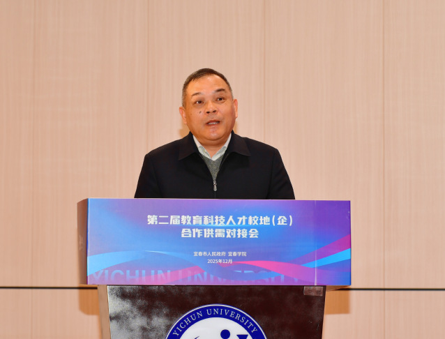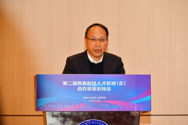省科学技术厅二级巡视员胡华林在致辞中指出,新一轮科技革命和产业变革加速演进,政产学研用深度融合已成为推动科技创新的关键路径。他表示,省科技厅将继续以政策、项目、平台为支撑,全力支持宜春深化校地(企)科技合作,鼓励高校与企业聚焦关键技术攻关,加速科技成果转化应用。希望各方以此次对接会为纽带,在新能源新材料、生物医药等重点领域凝聚创新合力,推动科技资源向产业一线集聚,为江西科技创新事业高质量发展贡献宜春力量。