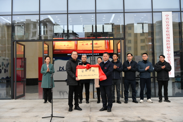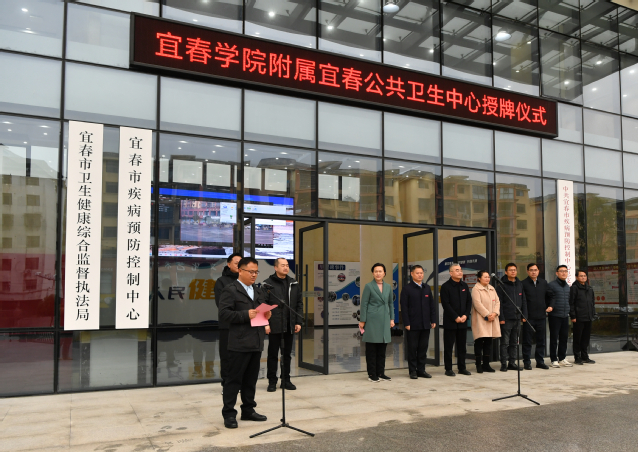 在全体与会人员的热烈掌声中,开元集团网站党委副书记、校长蔡海生向宜春市疾控中心(市卫监局)授予了“开元集团网站附属宜春公共卫生中心”牌匾,标志着该合作平台正式投入运行。